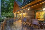 This 3 level 4 bedroom, 3 bathroom cabin has a great bedroom layout and is thoughtfully decorated with many custom furniture pieces throughout. The fully-stocked kitchen with granite countertops and stainless steel appliances has everything needed to enjoy a home-cooked meal. In the living area it boasts a gas log fireplace, gorgeous vaulted ceilings and a 55 inch Smart TV.